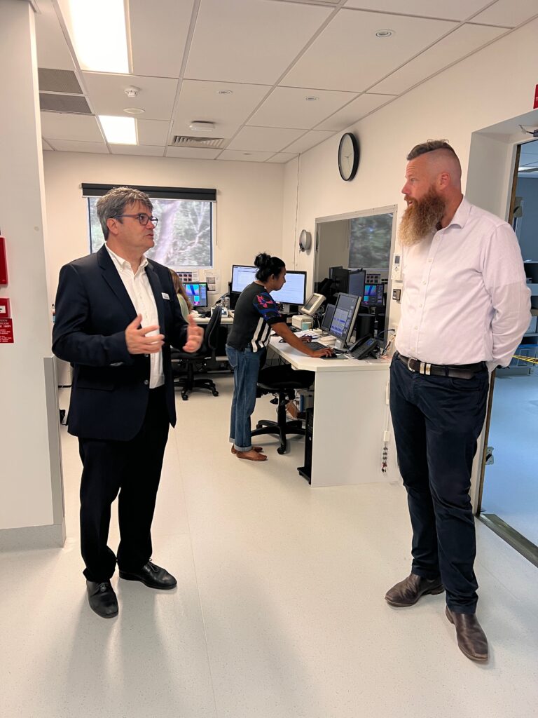 We swiftly headed downstairs to the Imaging Centre where Dr Bryan Paton, Deputy Stream Leader for Imaging, introduced Dan to Senior MRI Radiographer Shiami Luchow, before showing him around the Imaging Facility, where our research teams and patients  are collaborating on and developing a greater understanding of this most challenging cancer.