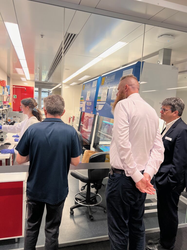 We then moved up to level three where Associate Professor Paul Tooney showed Dan the MHF Biobank. More than 10 years of the Biobank, with more than 400 patient samples, means that brain cancer patients legacy lives on, helping us to understand the complex nature of brain tumours and identify targets for therapies. Dan also saw the lab spaces where new and existing drugs are tested in efforts to identify better therapies and one day, a cure for brain cancer.